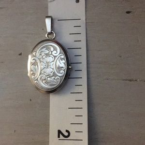 Sterling silver locket pendant. Oval with etching. Opens and closes properly. Perfect for Christmas