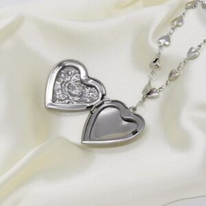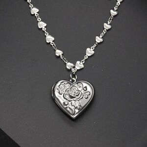 A charming heart shaped locket designed to hold a special photo. Perfect gift idea!