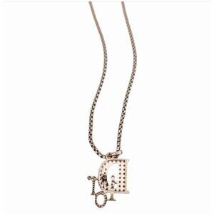Vibrant silver Dior logo charm reimagined as a statement necklace. Perfect for adding a touch of luxury to any outfit. Charm is repurposed and is in excellent condition.