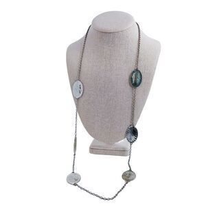 Silver Long Necklace Chain Multiple Pendants Boho Bohemian