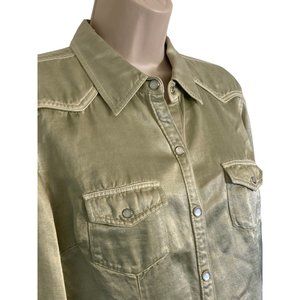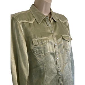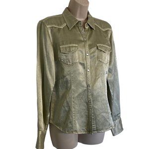 Silver Long Sleeve Button Down Shirt with Notched Collar