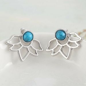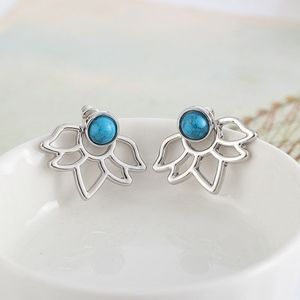 Silver Lotus Flower Blue Stone Jacket Earring