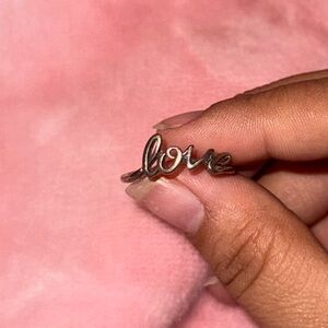 Elegant and stylish, this silver 'Love' script ring adds a touch of charm to any outfit. Perfect for everyday wear or special occasions.