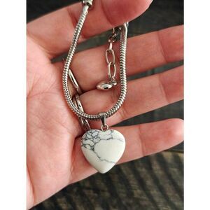 Silver Marble Heart Shape Crystal Stone Bracelet