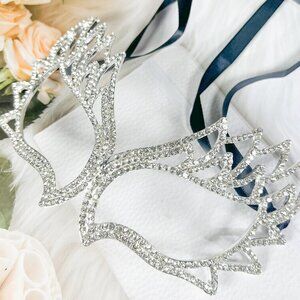 Silver Masquerade Mask, Venetian Mardi Gras Mask, AB Crystal Party Eye Mask