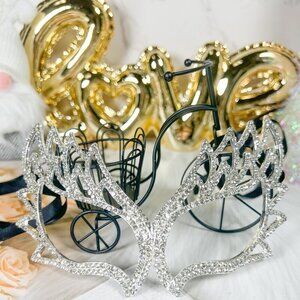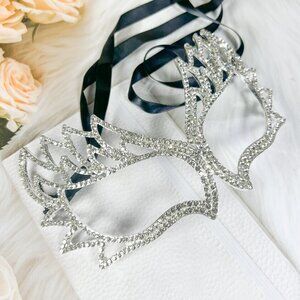 Get ready to turn heads with this stunning silver Masquerade mask! Perfect for festivals, weddings, proms, or any party, this Venetian-style mask is adorned with AB crystals and features an adjustable strap for a comfortable fit. The intricate crystal detailing will make you feel like royalty as you dance the night away. The one-size-fits-all mask is suitable for both men and women, and the elegant design will complement any outfit. Ideal for Mardi Gras or any special occasion, this mask is made in the United States and is sure to make you the center of attention.