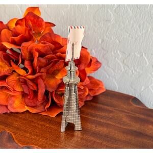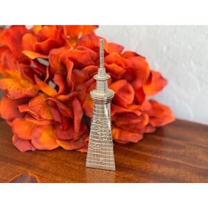 A small Tokyo Skytree–shaped souvenir memo clip holder from Japan. Lightweight silver-tone metal with a spring clip inside the base. Works well as a memo clip, note holder, photo holder, or small card stand. A unique and stylish desk decor accent with a Japan theme.