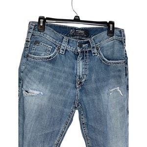 Silver Men's Jeans Gordie Straight Leg Cotton Distressed Mid-Rise Denim Blue 30