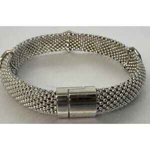 Silver Mesh Diamond-Accented Bracelet With Magnetic Clasp