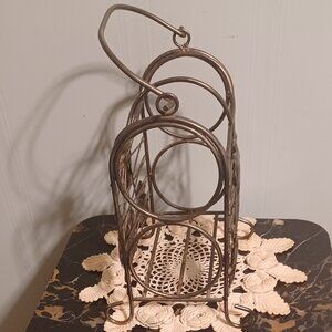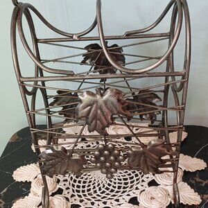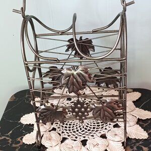 Silver Metal 2 Bottle Tabletop Wine Rack with Grapes & Leaves and Handle