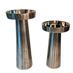 Silver Metal Black Etched Candleholders Set of Two Modern