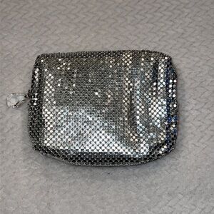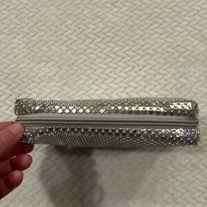 Silver Metal Mesh Clutch Handbag with Crystal Charm