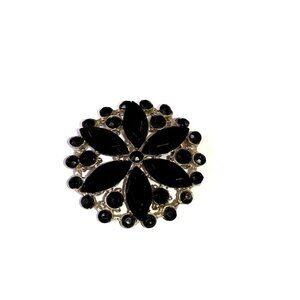 Sparkle in style with our lovely silver tone metal rhinestone brooch! Made from silver tone metal, this brooch features stunning black faceted rhinestones that catch the light and add a touch of elegance to any outfit. At 1-1/2" in diameter, it's the perfect size for a statement piece. Plus, it comes with a loop for easy customization and versatility.