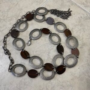 Silver Metal wood ? Belt Hippie Mod Chain tassel Hip Statement Chunky Boho Mixed Medium wood/ metal