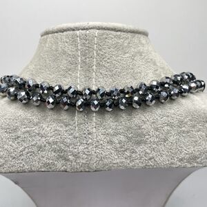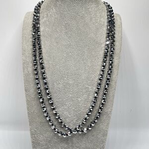 Silver Metallic 7mm Rondelle Faceted Cut Crystal Glass Bead 54" Boho Sparkly