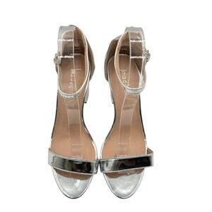 Keywords: silver heels, metallic sandals, ankle strap heels, block heel, party shoes, wedding shoes, dress shoes, silver metallic heels, shiny heels, formal shoes, Madden Girl, women's heels