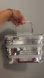 This eye-catching silver clutch features a sleek metallic finish and a structured design, perfect for adding a modern touch to any ensemble. The reflective quality of the material enhances its sophisticated appeal, making it an ideal accessory for special occasions. Its compact size and wristlet style offer both elegance and convenience.