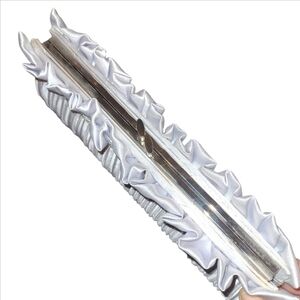 Silver Metallic Evening Clutch with Scrunched Pleated Fabric and Rhinestone Trim
