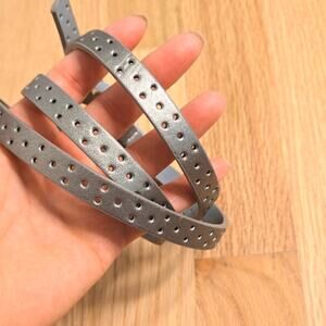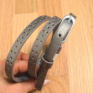 Add a touch of sleek style to any outfit with this silver metallic belt! This thin, die-cut belt is the perfect accessory to cinch your waist and elevate your look.