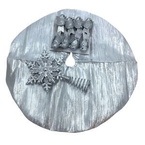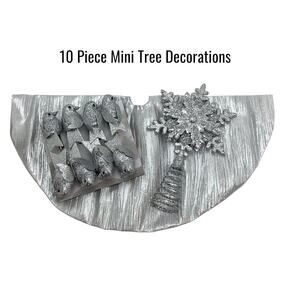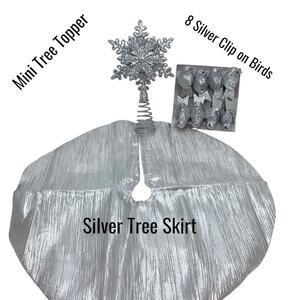 Silver Mini Tree Skirt Clip On Birds Ornaments Snowflake Tree Topper -10 Piece