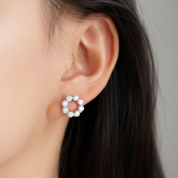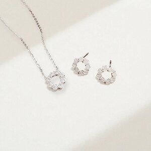 A luminous circle pendant inspired by the symmetry of a crown. Brilliant moissanite stones (0.20 ct each) form a radiant halo, set in sterling silver with rhodium platinum finish. A versatile necklace that symbolizes unity and quiet strength.