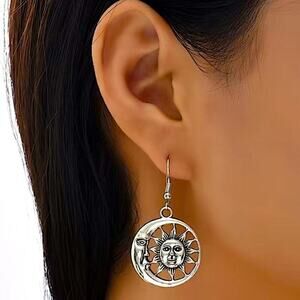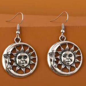 Silver Moon Sun Boho Vintage Fish Hook Dangle Earrings