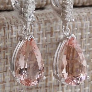 Sterling Silver Simulated Morganite Earrings with Rhinestone Accents