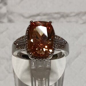 Silver Morganite and CZ Fashion Ring Size 10 - Flawed