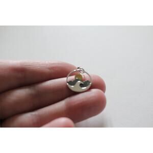 This is a Sterling Silver Wave Charm with Bronze Setting Sun Necklace. Both the charm and the necklace are Sterling Silver. This charm is on an 18 inch chain,
