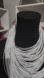 This elegant silver necklace showcases a dramatic multi-strand design, creating a voluminous and cascading effect. Its minimalist style is achieved through uniform strands that drape naturally, offering a bold and modern look. Crafted from a soft, flexible material, it ensures a comfortable and graceful fit.