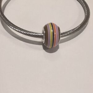 Silver Multicolor Striped Charm for Pandora Style Bracelet