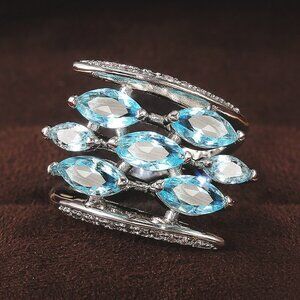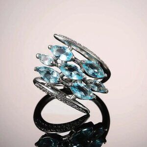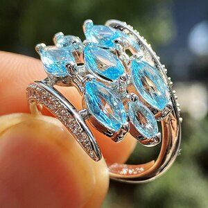 💍Silver Multiple Unique Marquis Gems Bright Light Blue💎 Ring, INDN8564