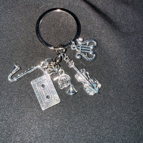Elegant silver keychain featuring detailed musical instrument charms. Perfect for music lovers. Ship weekly on Monday and Friday…