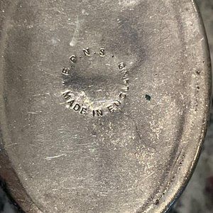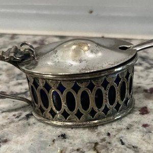 E. P. N. S., made in England. In good shape with spoon. 2 1/4" x 1 3/4" x 1"