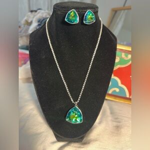Elegant silver necklace and earring set featuring stunning blue-green Swarovski gemstones. Perfect for adding a touch of color to any outfit. Very beautiful in person. New in condition