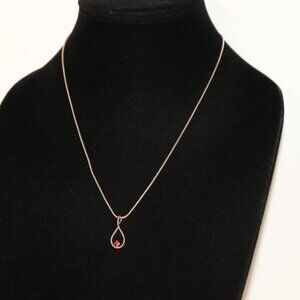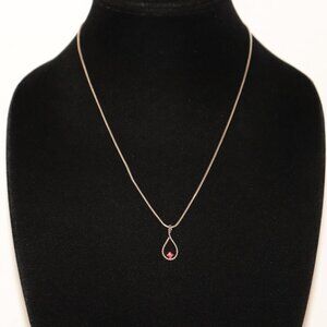 🔴 Silver Necklace with Red Rhinestone Teardrop Pendant – 19" ✨