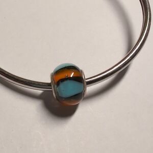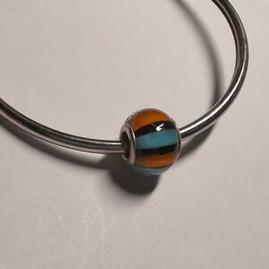 Silver Orange Black and Blue Striped Glass Charm for Pandora Style Bracelet
