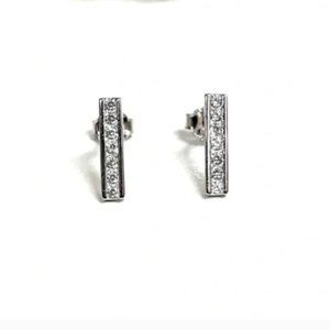 Silver PETITE BAR STYLE CZ Rhinestone STUD EARRINGS
