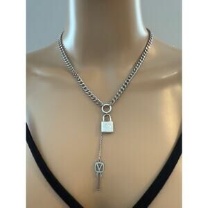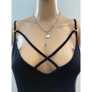 Silver Padlock Key Necklace Chunky Chain Y2K Statement Jewelry