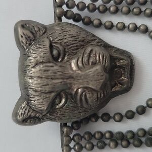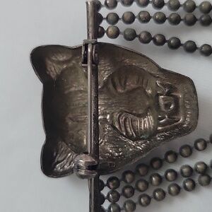 Elegant silver panther head brooch featuring layered chains. Perfect for adding a bold statement to any outfit.
