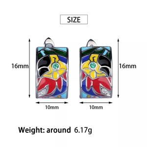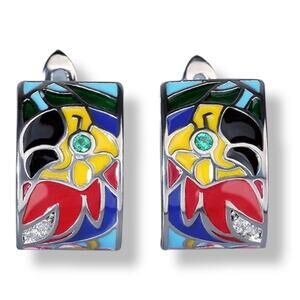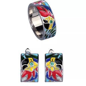 Silver Parrot Multicolor Enamel Ring and Pierced Earrings Set Ring