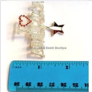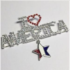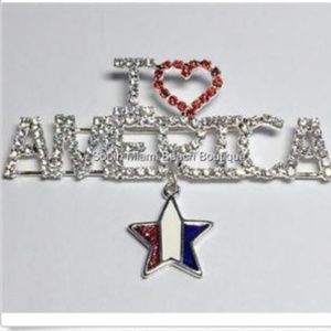 Silver Crystal USA American Pin Brooch.