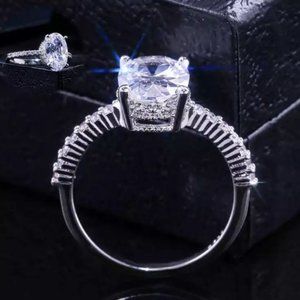 This exquisite silver ring showcases a captivating oval-cut center stone, elegantly set in a classic prong setting. The band is adorned with pavé-set accents, adding a touch of sparkle and sophistication to its timeless design. Reposhing only because my existing band doesn't fit next to it.