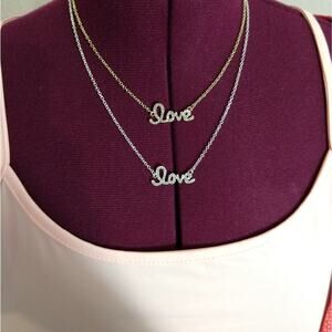Silver Pave Love Necklace 18k gold plated script 16"-19" mini glass rhinestones