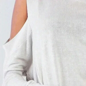 Silver Peek-A-Boo Shoulder Turtle Neck Swe…