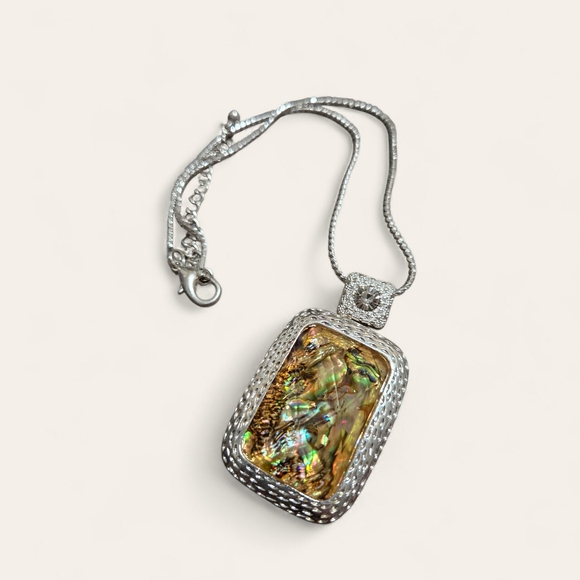 Elegant silver pendant necklace featuring a stunning multicolor stone. Perfect for adding a touch of sophistication to any outfit.