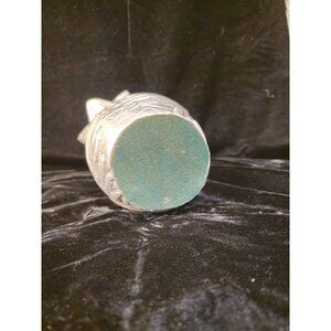 A charming silver-toned pineapple vase, exuding an antique allure with its textured detailing and exquisite craftsmanship. Ideal for adding a touch of vintage sophistication to any décor setting. The intricate design and unique shape make it a timeless centerpiece.