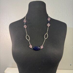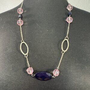 This elegant necklace features pink and blue gemstones, complemented by a unique silver chain design. Perfect for adding a touch of sophistication to any outfit or gifting to someone special.