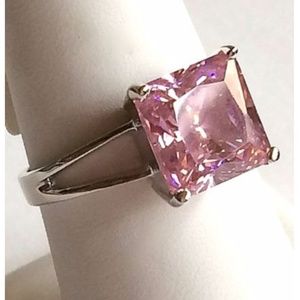 Silver Pink CZ Cocktail Ring Size 5 6 7 8 9 10
