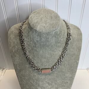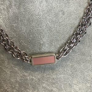 Silver Pink Enamel Rectangle Double Chain Necklace 21"